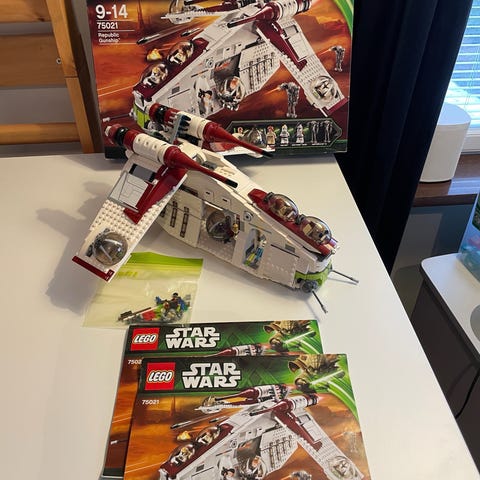 Provbyggt och komplett inklusive byggbeskrivning, men saknar låda och klistermärken. Bra skick enligt bilder, notera små sprickor i armarna på Count Dooku. Skickas nedmonterat.