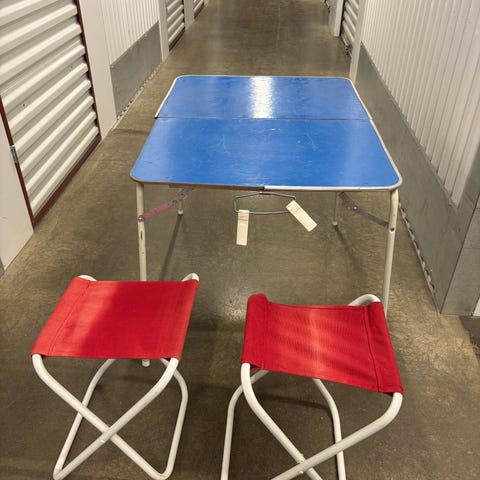 Campingbord med stolar ihopvikbart, mått 99x74 cm, fint skick, till veteranbilar mm på crusing. Finns i Bollnäs