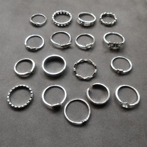 11 st snygga ringar med olika former och mönster för hela handen, unika!
