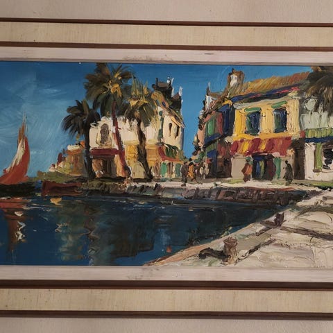 Olemålning, olja på duk i en solid trä ram. Okänd konstnär. Mått B 72, H 82 cm.