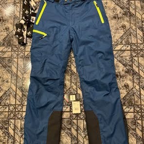 Jag säljer ett par blå, mycket välgjorda, helt nya snowboardbyxor i storlek 158 med avtagbara hängslen och justerbar midja, samt ett par mörkblå skidbyxor i storlek 164, kanske använda tre gånger, inte för skidåkning utan som överdrag. Midjan på dessa byxor kan justeras. Alla klädesplagg har tvättats och kontrollerats efter bästa förmåga för att upptäcka eventuella skador. Kläderna kommer från ett rökfritt hushåll.
