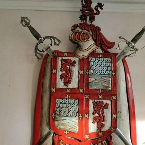 Vapensköld i trä och målad i olja, av en Castiliansk riddare från medeltida Spanien, El Cid 1043