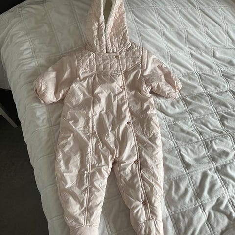 Vi säljer en underbar overall från Bonpoint i storlek 3 månader, men vår dotter använde den redan från födseln.