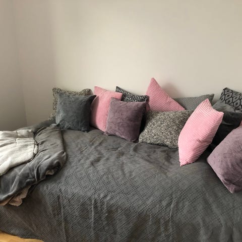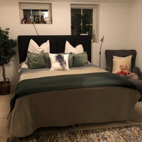 Sängkläderna kommer från ett rök-och djurfritt hem.