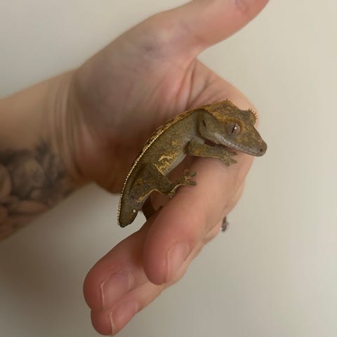Säljer pigg och vaken kille! Snart ett år gammal. Äter crested gecko nutrition, dubia, syrsor och mjölmask. Har tyvärr förlorat svansen i syskonlek.