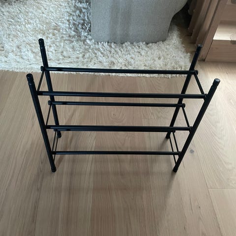 Snyggt förvaringsställ i svart metall, för diverse förvaring, t.e.x. kuddar, plädar, ved. etc.
