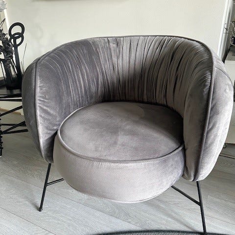 Säljer oanvänd fåtölj från Ellos, modell Karma i färgen Cremevit och valnöt.