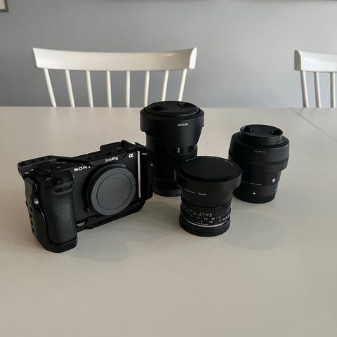 Kameran säljs tillsammans med en Sigma 56 mm f1.4 & en sony 35 mm f1.8 E.