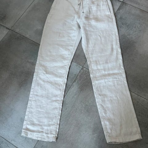 Mörkblå linnebyxor från Samsøe Samsøe, modell Smithy trousers. Byxorna har elastisk midja och smalare ben, vilket ger en avslappnad men ändå stilren look. Perfekta för dig som gillar bekväma och snygga byxor i svalt material.