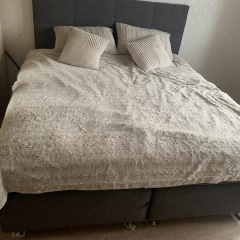 Ikea Tufjord dubbelsäng med resårmadrass. Mycket bra skick. Detta är modellen med stora förvaringslådor i sidorna. Den säljs inte längre. Otroligt praktisk förvaring som sväljer mycket lakan mm. Resårmadrassen är Ikeas Vatneström medium fast. Inköpt september 2021. Fri från fläckar och i mkt fint skick.