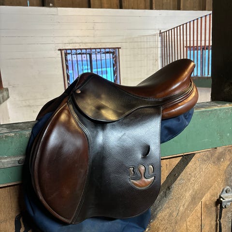 Svart hopp/allround sadel i storlek 17 medium + från märket Jeremy Rudge säljes. Luftstoppade och justerbara bossor som formar sig efter hästen. Sadeln är rymlig och passar häst med bredare manke, bomvidd medium +. Mått 17 tum.