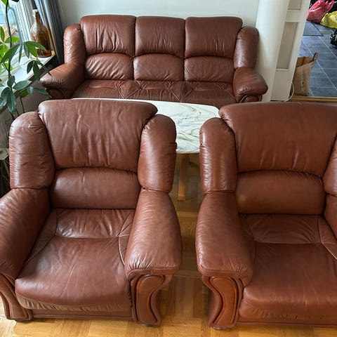 Använd soffa . Superskönt. Behöves smörjas. Har fler år att ge.