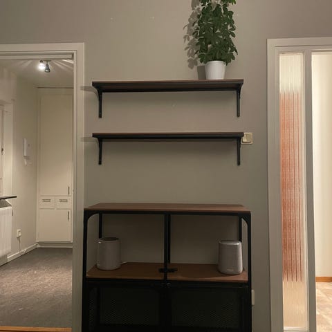 Hyllan står stadigt även på ojämna golv eftersom den har justerbara fötter.