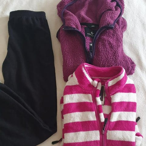 stort paket ullfrotté, vindfleece samt fleece pop metoo mfl