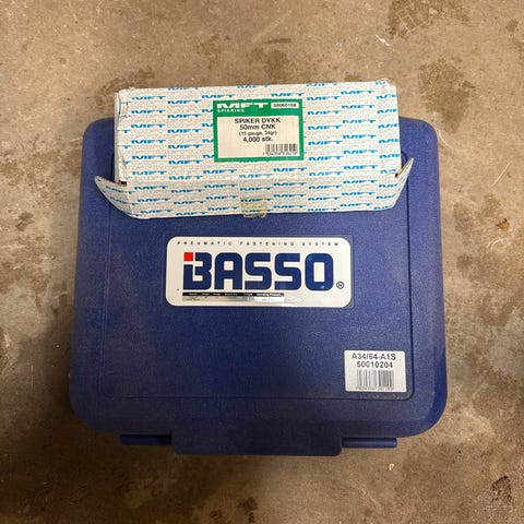 Helt oanvänd spikpistol från basso, mkt bra kvalitet. Inga garantier kvar men den är som sagt oanvänd.
