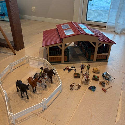 Schleich stall inkl tillbehör, ryttare och hästar