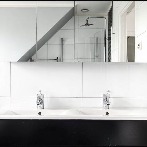 2 stycken jättefina handfat som är monterade på en svart stenskiva. 2 stycken blandare medföljer.