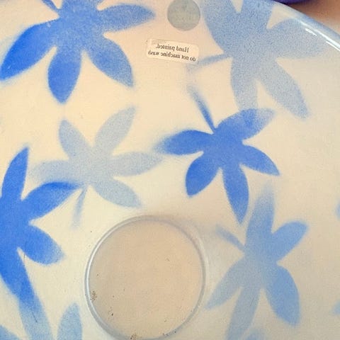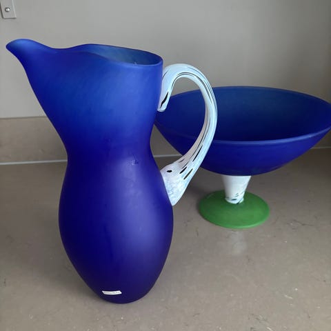 En fin skål från Sea Glasbruk. Den är handmålad med ett blommönster i blått. Vasen har en liten skada.