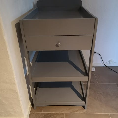 Säljer vårt praktiska och stabila BabyDan Alfred-skötbord. Det har en skötyta, två rymliga hyllplan samt en smidig låda för småsaker. Dessutom finns en utdragbar hylla som kan dras ut ca 63,5 cm – perfekt när du behöver extra avlastningsyta.