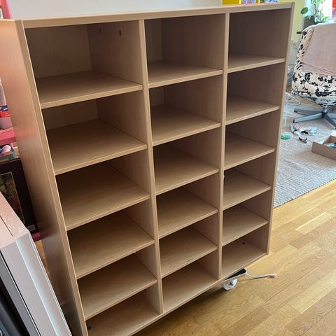 Två stycken hyllförvaring till förrådet eller garaget säljes. En grundare och en djupare. Se mått på bilderna. Den djupa säljes för 200 och den grunda för 150kr.