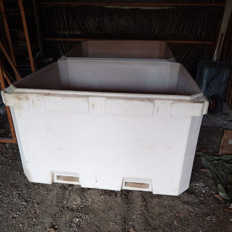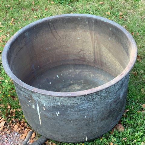Galvaniserad plåt. Mått: 135 cm lång, 65 cm i diameter.