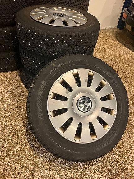 En komplett sats med kompletta vinterhjul och nya kvalitetsdäck som har suttit på en Toyota Rav-4 från 2015 men passar även äldre och nya Rav 4. Vinterdäck dubb på 17 tums original Toyota plåtfälgar med TPMS och kapslar.
