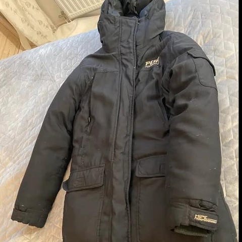 Aprikosfärgad vinterjacka i dun från Peak Performance, strl S. Två fickor på utsidan och en innerficka. Mycket varm och skön! Jackan säljes nytvättad i fint skick bortsett från den lilla fläcken på ärmen enligt bild 5.