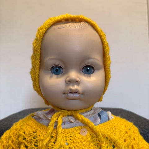 En hand saknas (dockan köptes i detta skick).