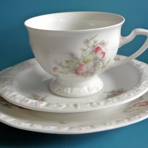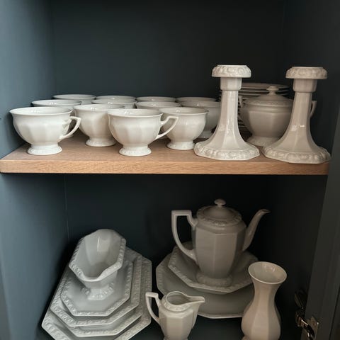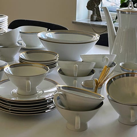 Servis som endast haft i dekorativt syfte, stått i vitrinskåp. 44 delar.