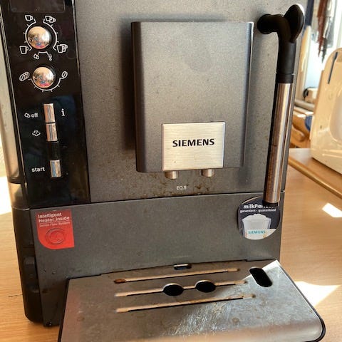Den gör bra kaffe, men vattenpumpen orkar inte göra ånga eller tevatten. Allt annat funkar.