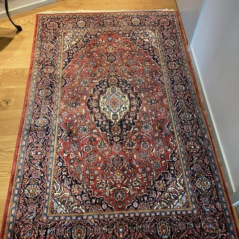 Vacker och välbevarad Keshan matta från Iran. Handknuten i fin ull på bomullsvarp, med klassiskt persiskt mönster och harmoniska, djupa färger. Mattan har en lätt patina som ger charm och karaktär utan att ta från helhetsintrycket.
