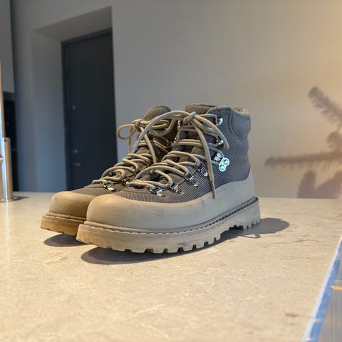 Gummistövlar/boots från märket Diemme. Sparsamt använda. Köptes för 2200kr. Säljes för 800kr. Färgen är grågrön. Skomakare har adderat dragkedja fram på skon då denna modell av sko är väldigt svår att få på foten annars. Kan hämtas i Älta eller centralt i stan eller skickas mot porto.