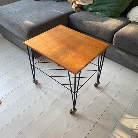 Äldre stringbord i fint använt skick. Teak ovansida och vitt underrede i metall