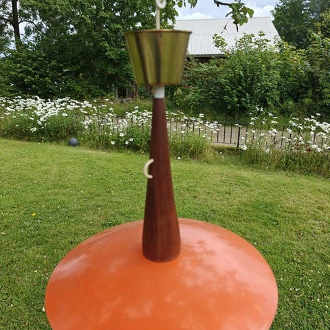 TAKLAMPA, plåt samt teak, 1960/70-tal.Retro
