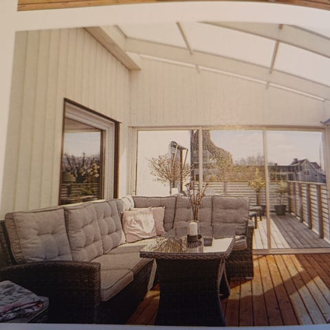 äkta rottinggrupp inkl dynor och bord med glasskiva