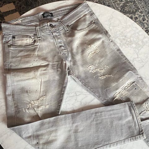 Ett par mörkblå jeans från Jack & Jones. Jeansen har en klassisk design med fickor fram och bak.