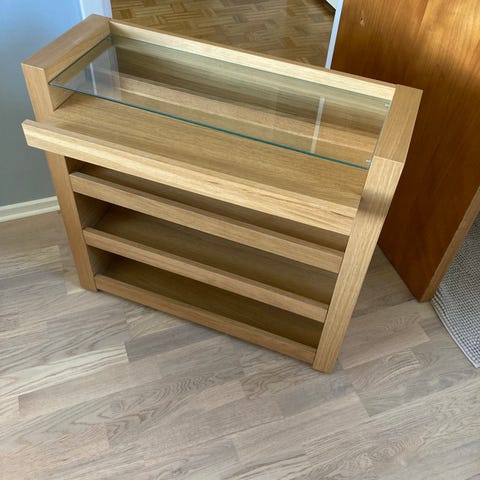 Säljer ett nattduksbord från Ikeas malm serie. Färgen är björk, det finns några repor på vänster sida av ”hyllan”. Därför rekommenderar jag att ha bordet på höger sida av sängen så kan man dölja dem.