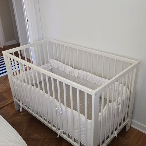 Vi köpte en helt ny madrass med madrasskydd.