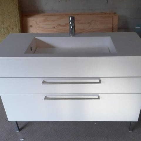 Handfat tillverkat i äkta rostfritt stål med överfyllningsskydd vattenlås och fästen för väggmotage.