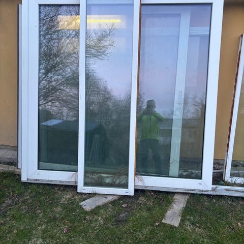 Glidskenor (~300 cm) ingår i paketet. Använd skick and funkar felfritt. Bra för uterum/balkong.