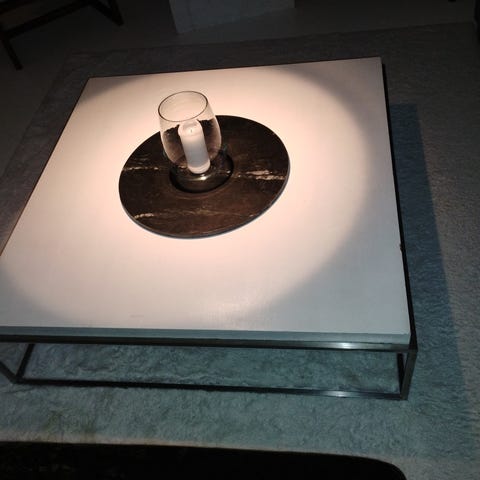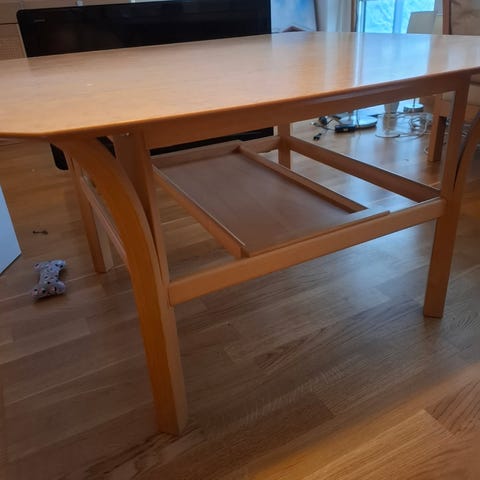 Ett klassiskt kvadratiskt bord från Möbelfabriks AB Carlsson & Co, Bengtsfors. Perfekt som soffbord eller sidobord. Bordet har en tidlös design med svarvade ben. Den är 72 gånger 72, och höjden är 44.