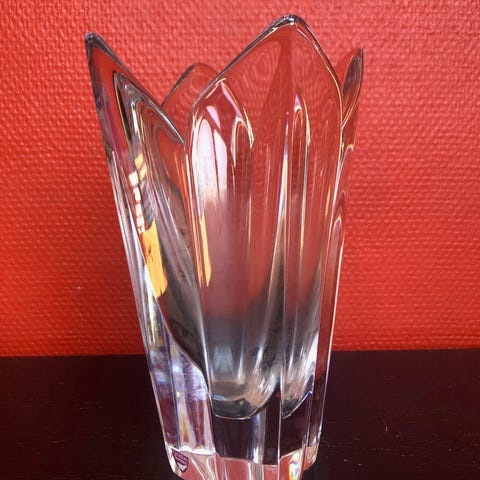 Vacker kristallvas från Orrefors Sweden, Tillverkad i tung, klar kristall med blomformad öppning.