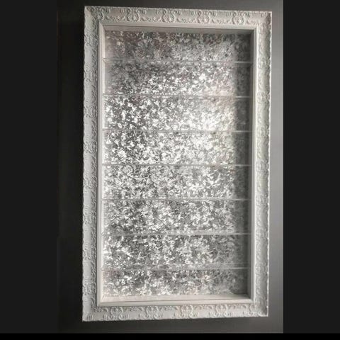 Vit trävägghylla vintage. 100 x 100 cm. Djup 16 cm.