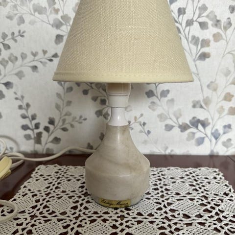 Mycket fin bordslampa i svensk ljus Ekebergsmarmor. Lamphållare E14. Glödlampa och skärm ingår. Diameter fot ca 7,5 cm. Höjd med lampa ca 21,5 cm. Diameter beige skärm ca 14 cm. Höjd ca 10 cm. (2) Se gärna mina övriga annonser .