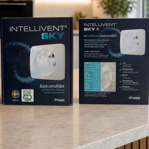 Enheten har en inbyggd fuktsensor, och när den aktiveras leds fukten ut ur rummet och ut i det fria, vilket förhindrar att fukten sprids till andra rum i huset.
