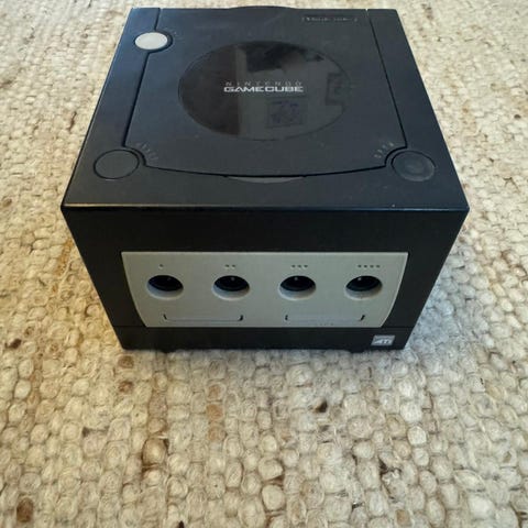 Nintendo GameCube konsol med strömförsörjning.