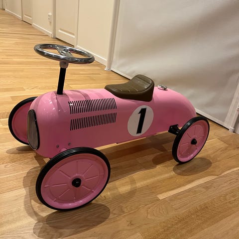 Säljer en sparkbil från Magni Toys i rosa färg. Fint skick. Endast använd inomhus.