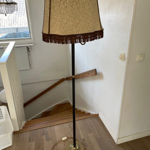 Golvlampa i mässing med lejonfötter. Empire stil från mitten på 1900-talet. 125cm hög Lampskärmen är som ny. Inköpt aug. 2024 Finns i Askim
