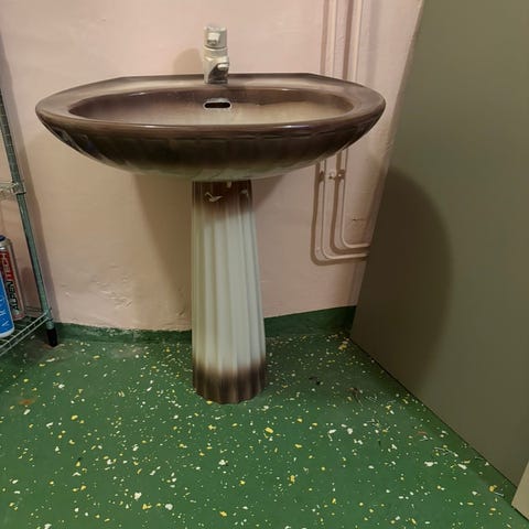 Tvättställ, pelare, avloppsrör, fästen o en slang.