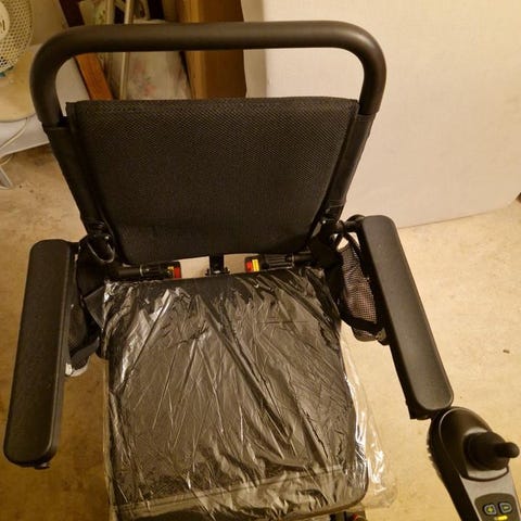 Promenadscootern väger 50kg inklusive batteri och stol. Inkluderar regnskydd.